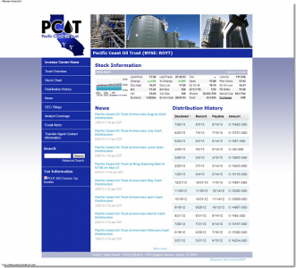 1株あたり0.15462ドル2013年7月26日、米石油・天然ガスPacific Coast Oil Trus(NYSE;ROYT)は、投資信託の月次配当を宣言した。