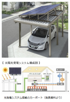 LIXIL、効率を考慮した太陽光発電付きカーポート発売で創エネを支援