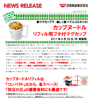 【エコで非常食に好適】日清から「マグカップ+リフィル」のヌードル登場