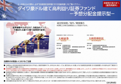 予想分配金を提示する「ダイワ豪ドル建て高利回り証券ファンド」が新設、追加募集開始