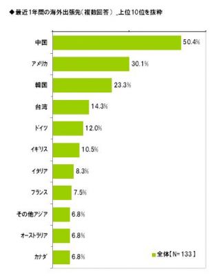 ビジネスマンの海外出張先は中国が5割--ライフネット生命調査