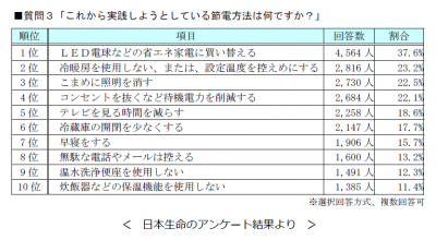 LED電球などの省エネ家電に買い替えが4割--日本生命の節電意識調査で