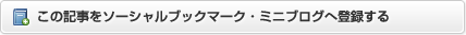• Yahoo!ブックマーク  Googleブックマーク  はてなブックマーク  POOKMARKに登録  livedoorClip  del.icio.us  newsing  FC2  Technorati  ニフティクリップ  iza  Choix  Flog  Buzzurl  Twitter  GoogleBuzz