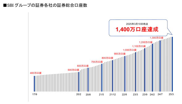 楽天証券株式会社は、開示情報ベースを基にした国内証券会社単体で、証券総合口座数が1,300万口座を達成したと発表した。それを記念して、キャンペーンを実施している。